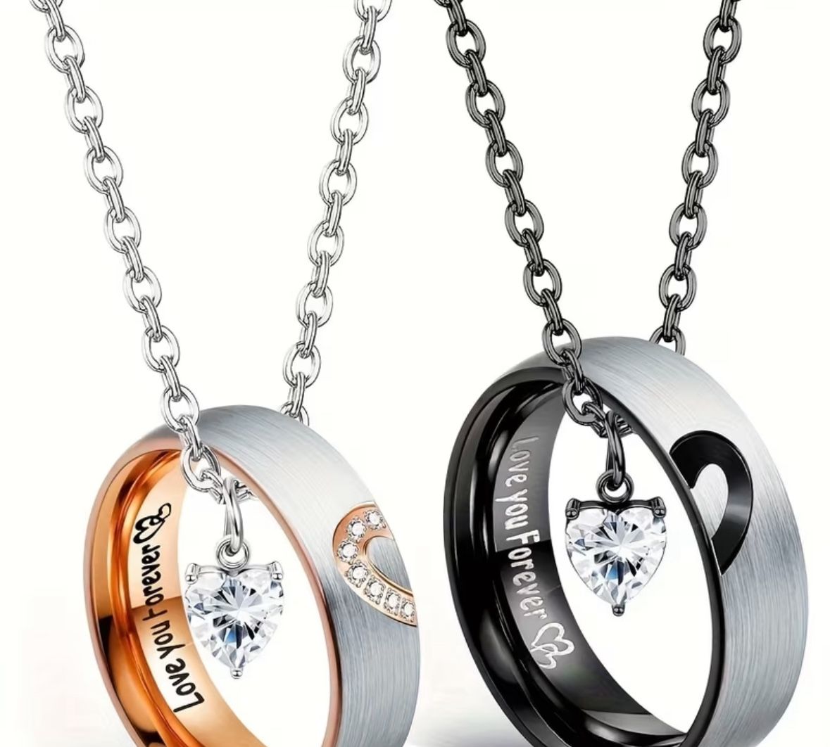 Couples' Matching Necklaces And Promise Rings Set, Crafted from, Perfect for Anniversaries And Valentine'S Day Gifts for Him And Her.