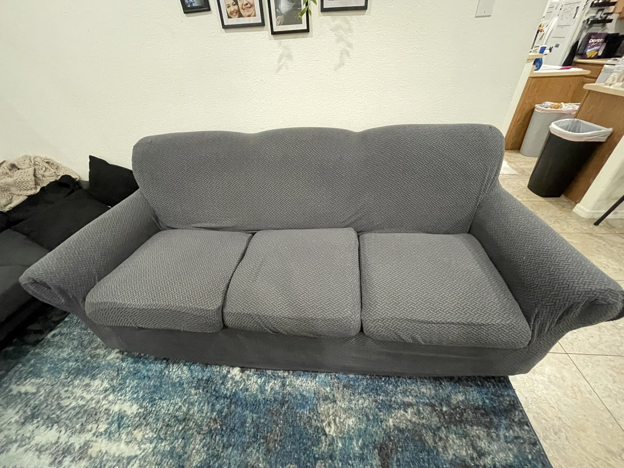 Very comfortable and sturdy La-Z-Boy couch. Comes with a removable, washable cover, which makes it easy to keep clean. Great for homes with pets or kids. • Solid frame, built to last • Cushions still supportive and comfortable • Cover is freshly washed • No major damage Only getting rid of because I'm upgrading furniture. Need gone ASAP due to new furniture. Pickup only.
