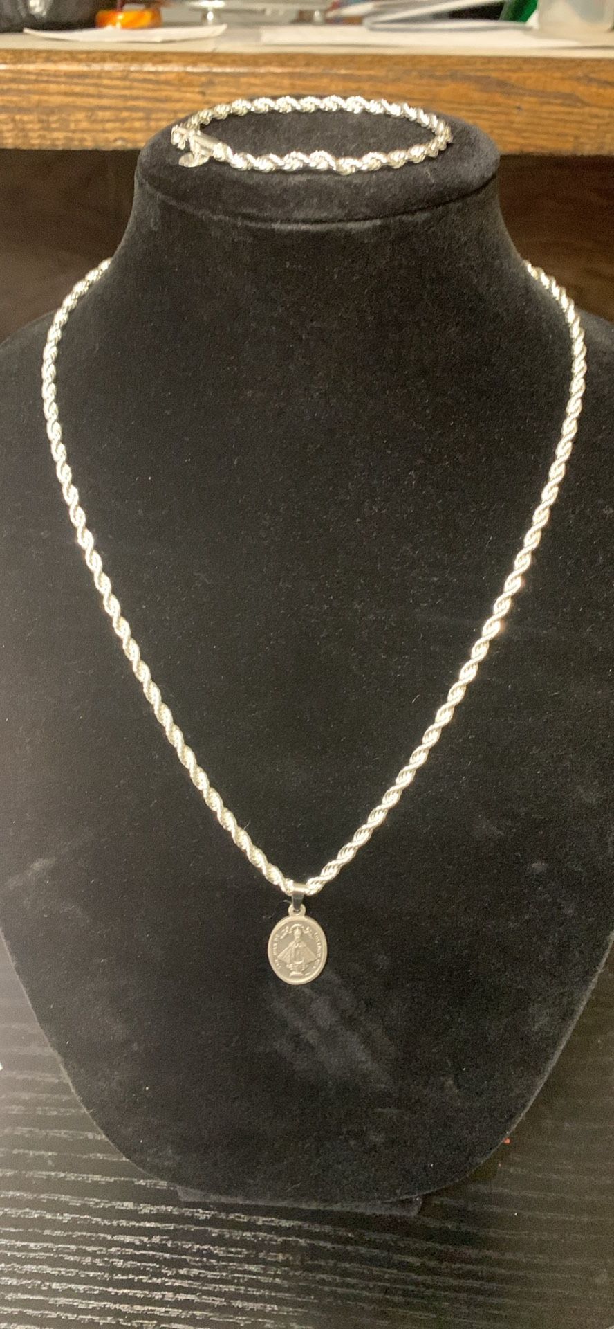 Sterling Silver 925 24 Inch Necklace And Bracelet With Catholic Pendant Cash Only