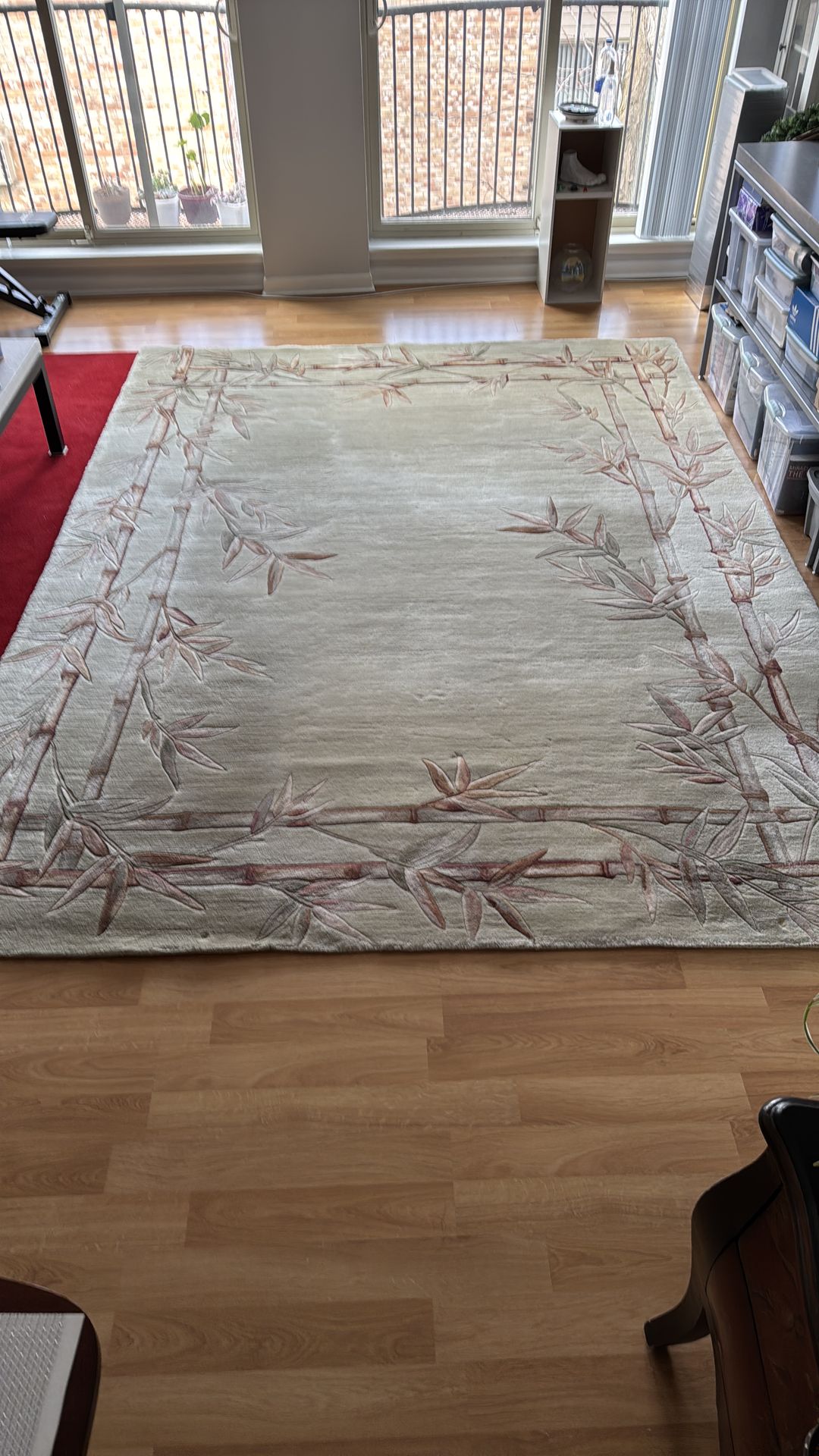 In very good condition, used living area wool rug, no pets no children’s. Size 11 ft 5” long x 8 ft 6” wide.