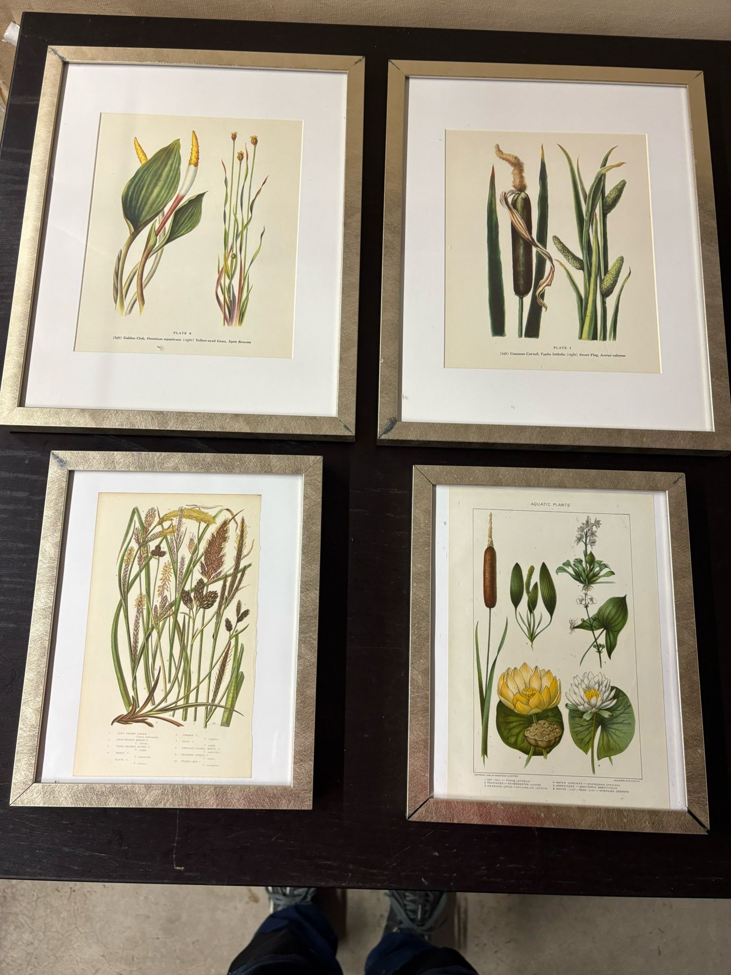 2 in 11x14 frames 2 in 8x10 frames. Frames are newer and are a distressed gold color, 1 is in need of repair. The value is in the prints, they are old from a botanical book.