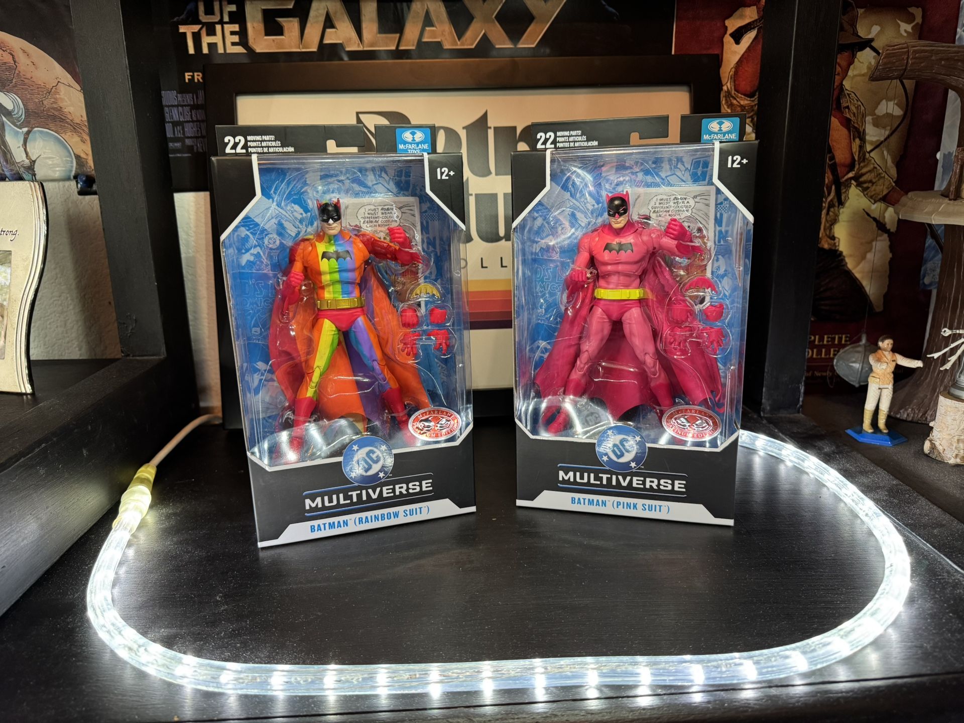 McFarlane DC Multiverse Batman Rainbow Suit and Pink Suit Platinum Edition NiB
