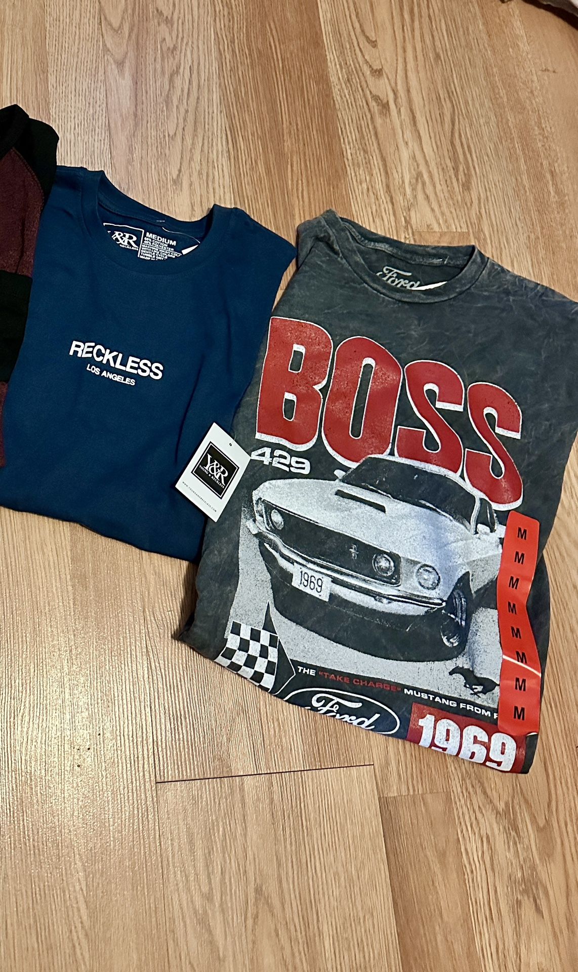 Brand new with tags Young and reckless and ford boss mustang 429, 1969 Both medium New never worn Citrus park carrollwood Tampa