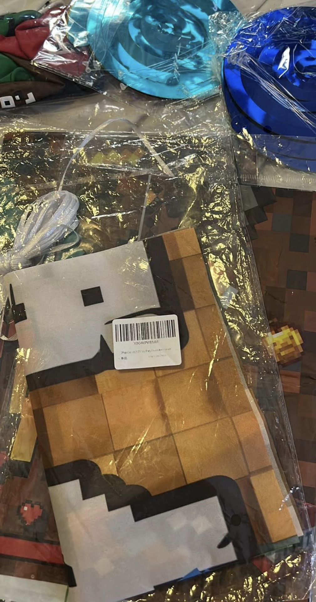New Minecraft birthday bundle 1 small long happy birthday banner 1 pack of ballon’s 2 packs of swirls 1 pack of green forks 2 packs of plastic table cover 2 packs of cups All for $15 Located off pleasant st and forest riverside ca 92507 Cash only Serious buyers