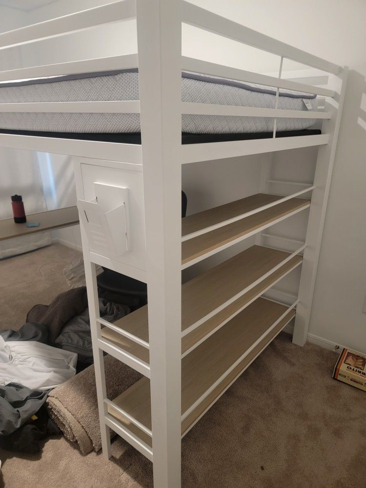 White full-size bunk Bed, with built in shelves and small desk. Bearly used, semi-new. I can deliver 30 mile range
