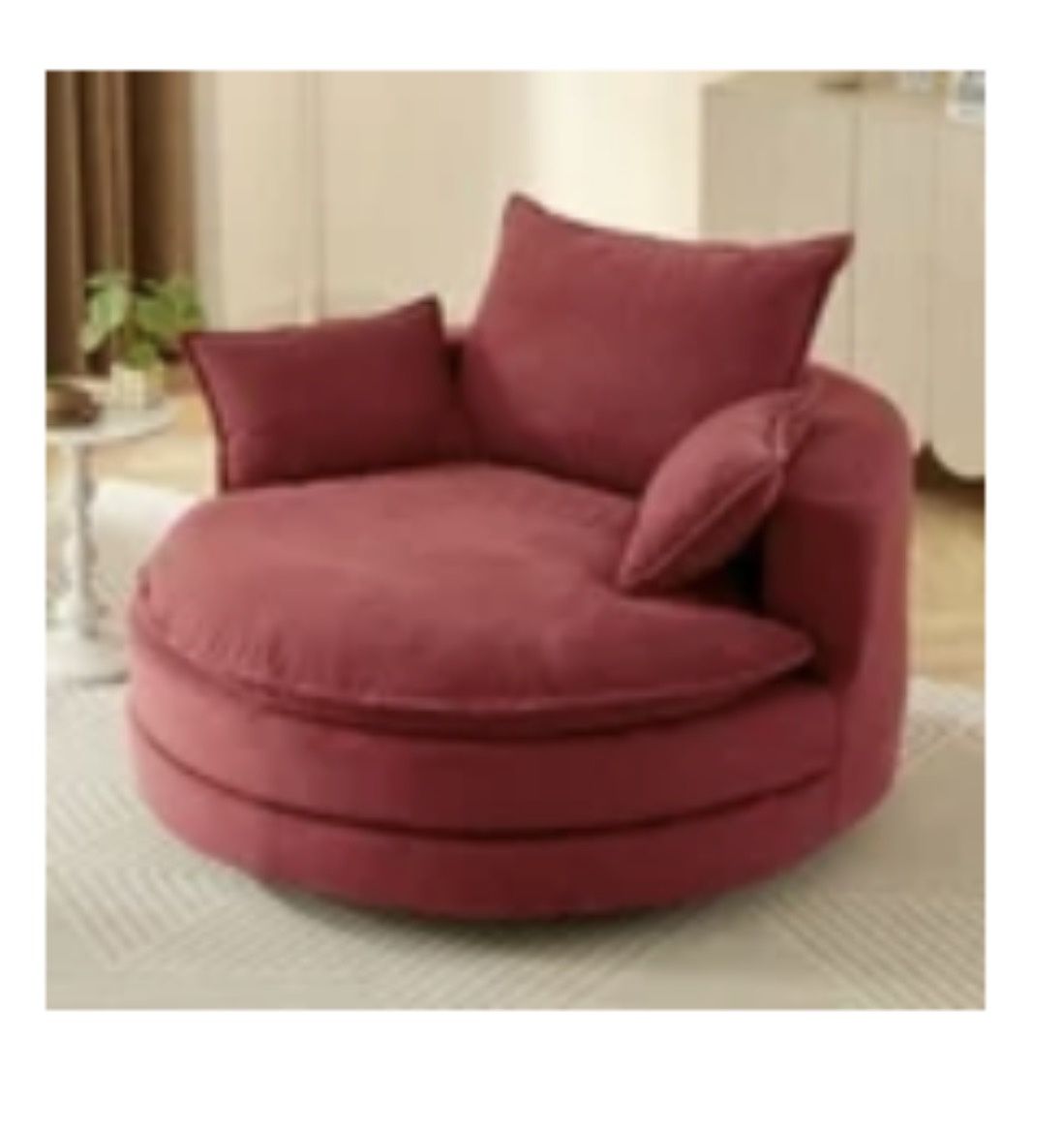 360° Chair, Barrel Chair Swivel Round Sofa Chair with Cushion and 3 Pillows for Living Room, Red