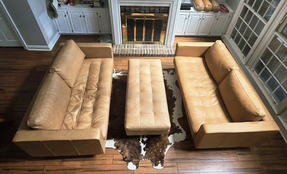 2 - Sven 72" Tufted Leather Loveseat - Charme Tan 1- Sven 56" Tufted Leather Bench - Charme Tan Leather furniture from https://offerup.co/faYXKzQFnY?$deeplink_path=/redirect/. Less than 2 years old with normal wear. Small blemish on one sofa (see photo)