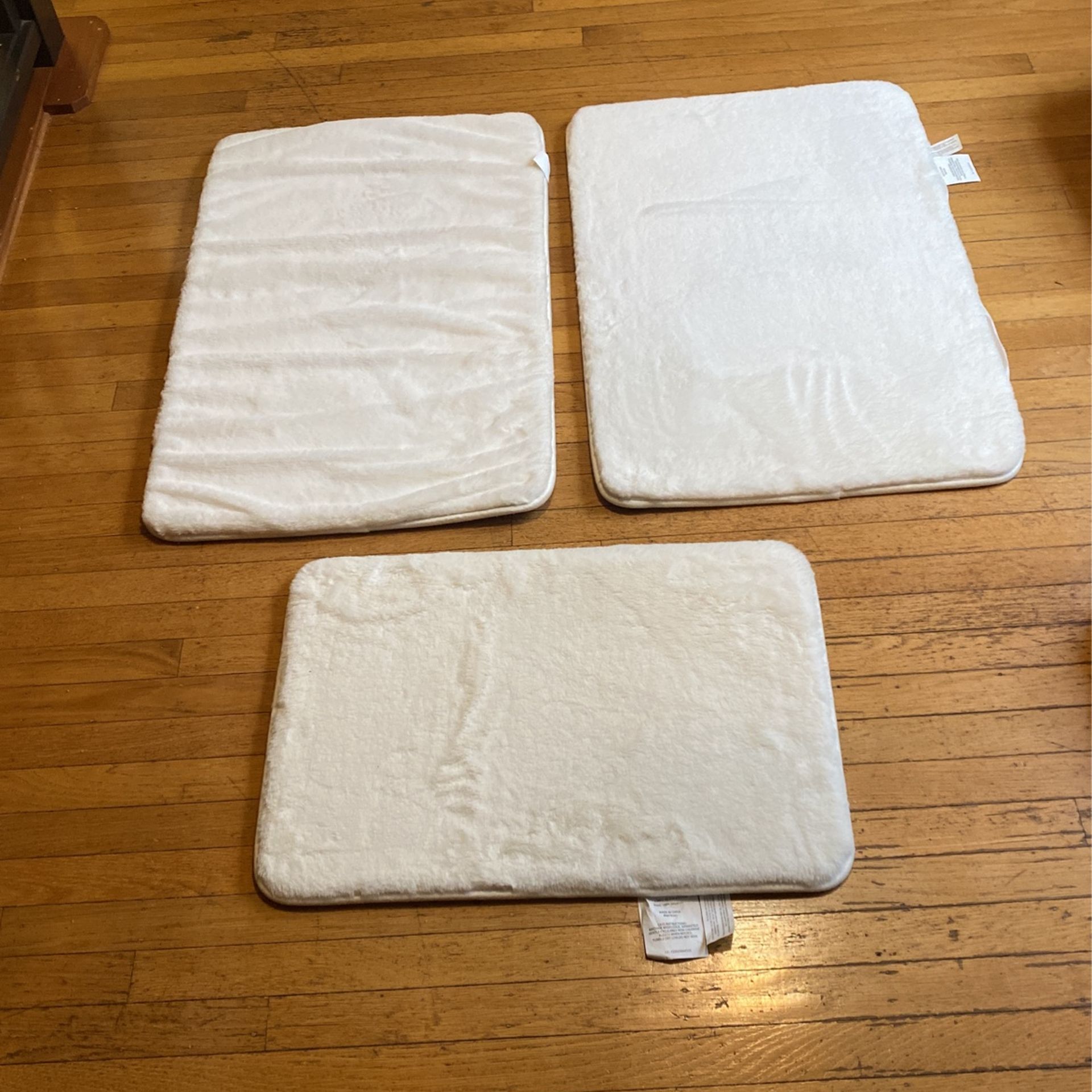 Brand new white matching 3 piece bathroom mats 2 mats are 20”x 32” 1 Mat is 17”x 24” Super soft All for $30
