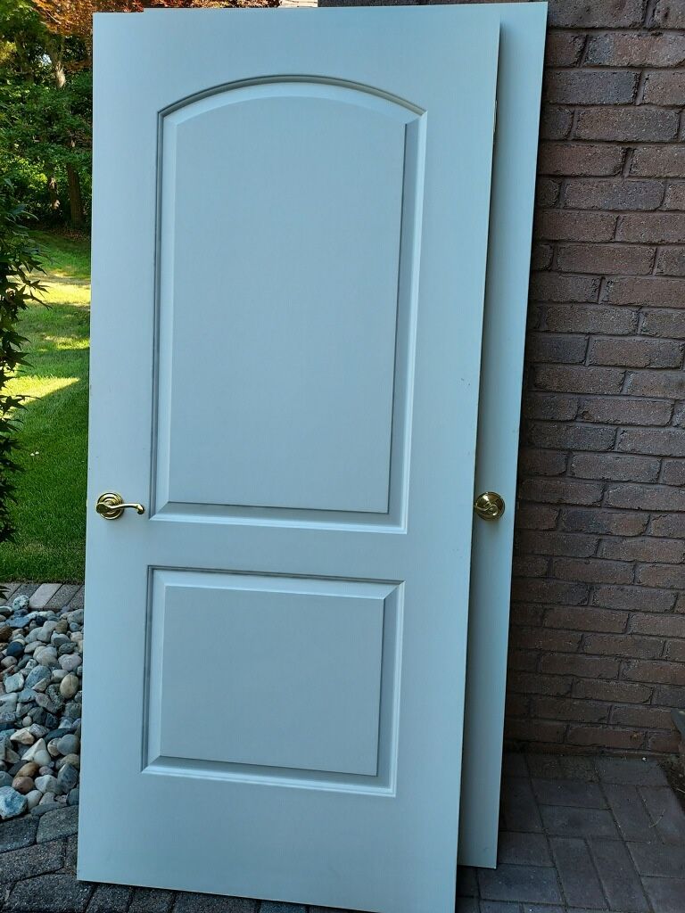 Two solid wood core 36 x 80 doors. Right and left doors. High quality excellent shape Door handles as pictured included.