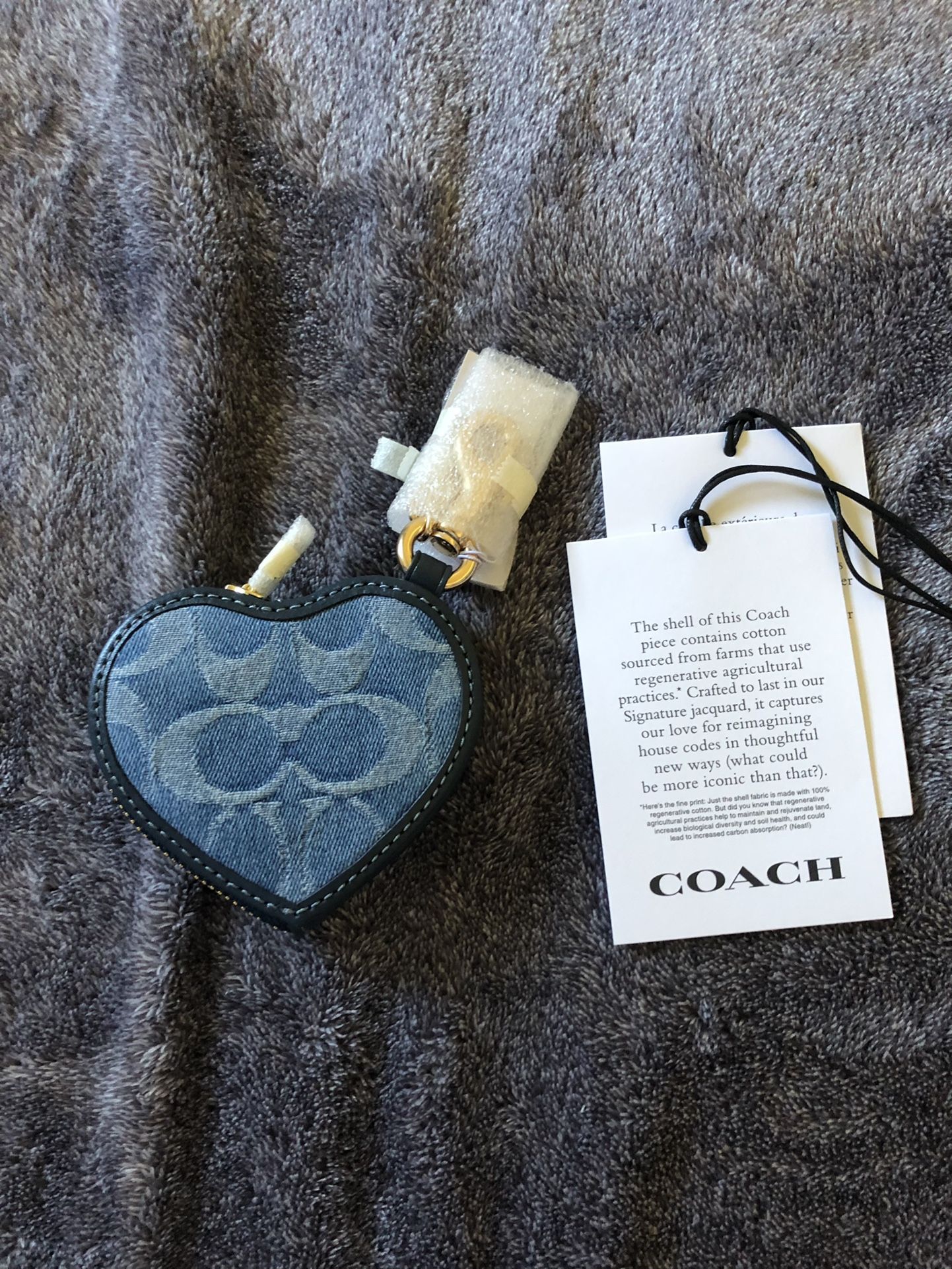 Coach Heart Bag Charm in Indigo/Gold BRAND NEW