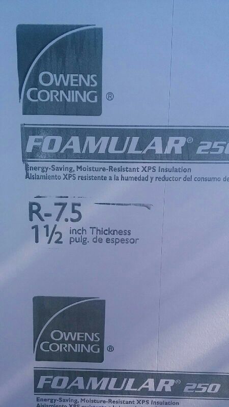 R-7.5 1 1/2" 4'x8' grooved foam insulation commercial grade $25 a sheet I have 15 available