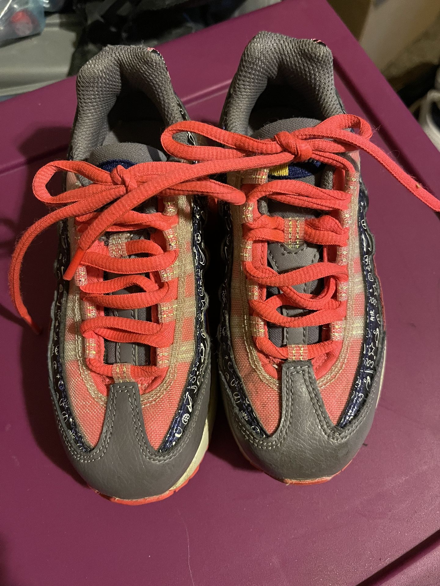 All shoes are 30 dollars. Red Air Max - 2Y White Adidas - 6.5 White Nikes - 11C Blue Pumas - 2Y Black Jordan’s - 4Y Black Nikes - 2.5Y