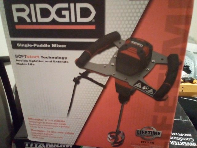 **RIGID** Single-Paddle Mixer ~Brand New in Box!! Retail price $180.00, Need to sell ASAP!! So I'm selling it today for $110 OBO •SOFT Start Technology starts upm slowly to avoid splashes, save motor life, and operate safely • The speed for this unit is up to 800 RPM •Die-Cast Gear Box increases the durability and professional quality 5/8" •Keyed Chuck accepts most common mixing paddles •Lock-On Button for continuous mixing and easy operation