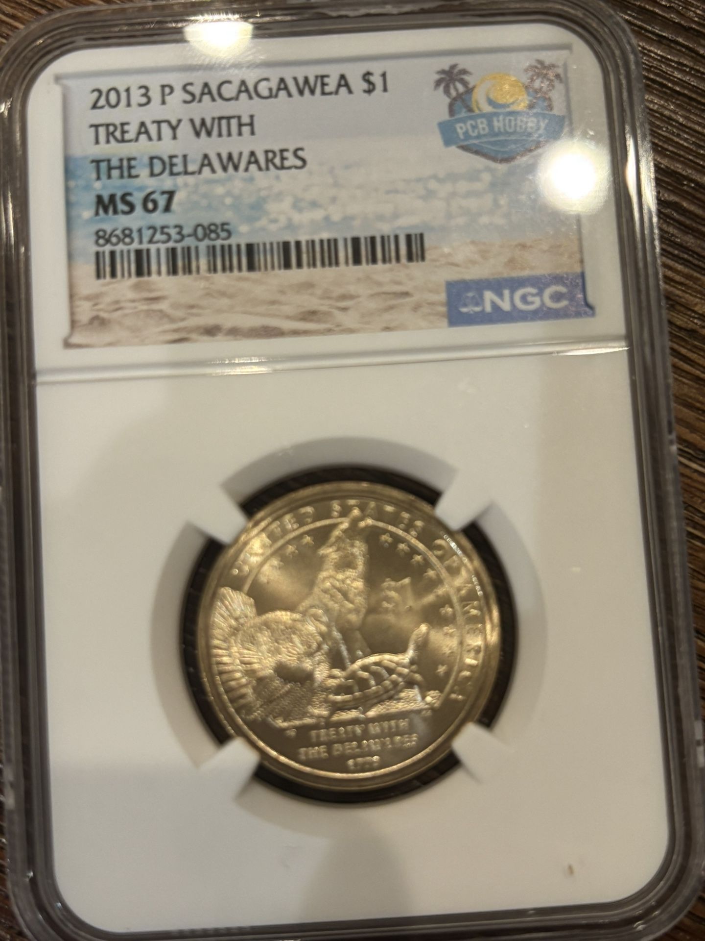 $70 For sale is a 2013-P Native American $1 Dollar, featuring the “Treaty with the Delawares” reverse design. This coin has been certified by NGC at MS67, confirming authenticity and excellent Mint State preservation. Details: • ✅ 2013-P Native American Dollar (Sacagawea series) • ✅ “Treaty with the Delawares” reverse • ✅ NGC certified MS67 • ✅ Genuine U.S. Mint issue • ✅ Attractive mint luster and strong strike Coin Coins