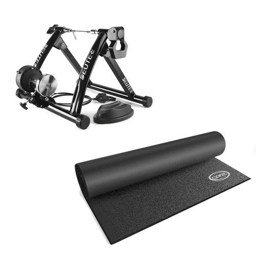Bike Trainer + Bike Mat 31.5" X 59", Magnetic Bicycle Stationary Stand For Indoor Exercise Riding