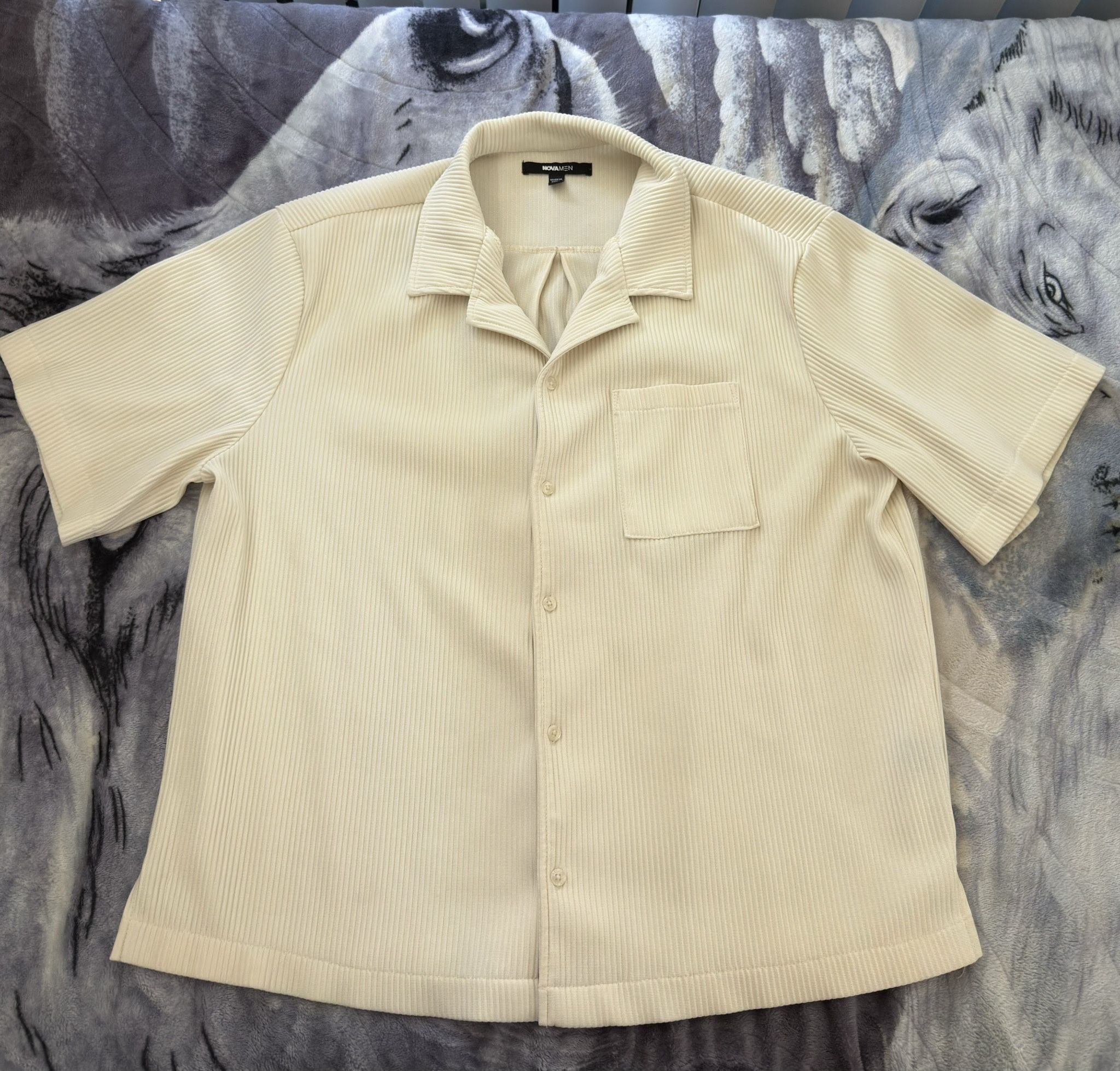 #fashionnova #novamen #cubanshirt off white, short sleeve, button-up, relaxed fit, classic collar, lightweight, casual, summer shirt, minimal design, summer vibe