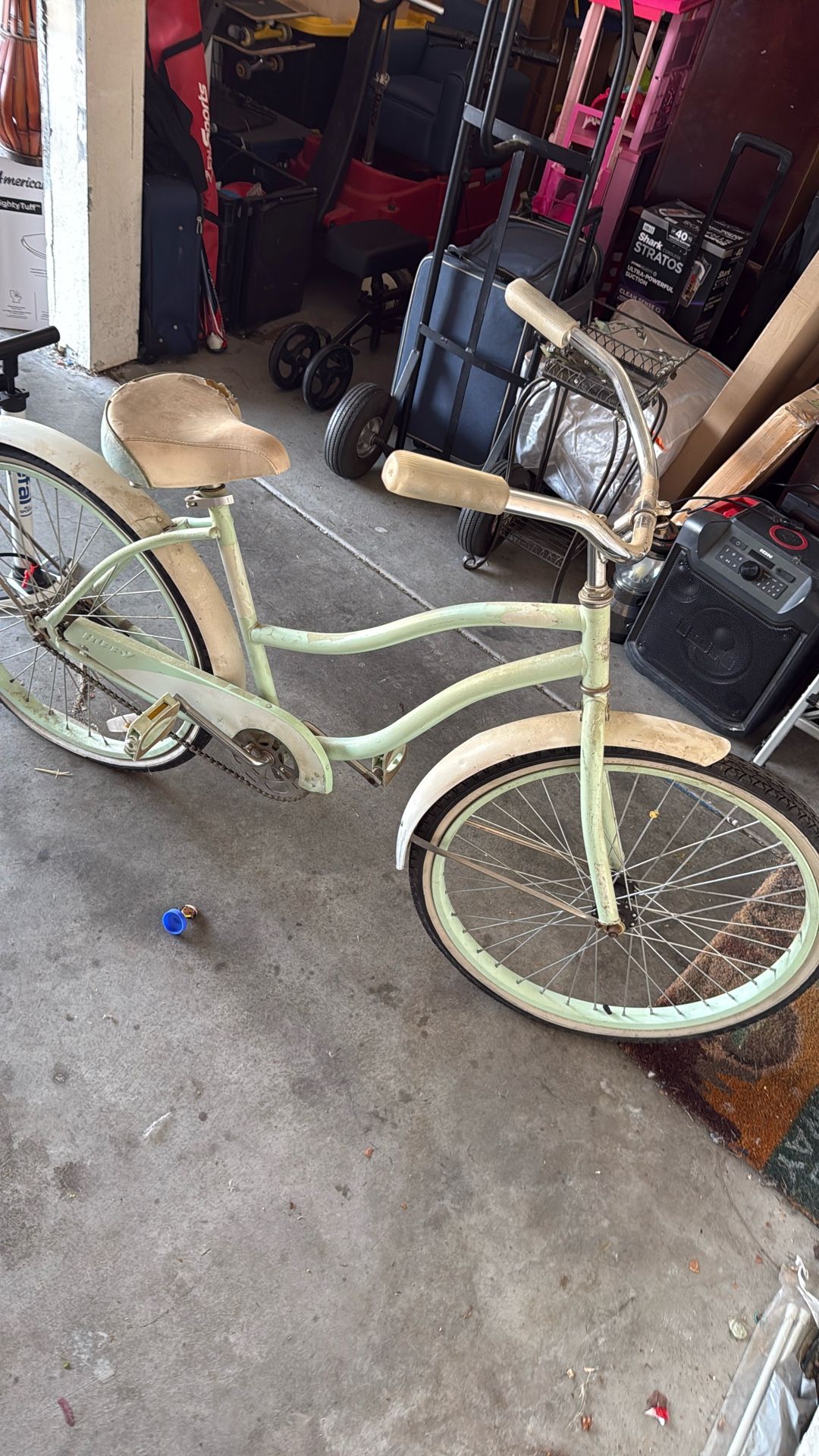 Huffy beach cruiser $30. Little wear and tear on seat. Still rides good.