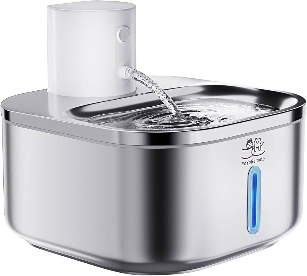 New in Box. Retail at $70. True Wireless Pet Water Fountain:The YoYoRemote wireless cat water fountain has a built-in 5,000mAh battery lasting 45-60 days of daily use. Place it anywhere in the house, no wiring needed, and no worries about running out of power. Encourage your cat to drink more water by placing the fountain where they like. Modular Design: The water fountain is made of 304 stainless steel, which is easy to clean. With its modular design, the detachable battery ensures effortless installation and disassembly, taking the hassle out of keeping your pet's water fountain clean and fresh. 3 Modes to Choose From: The YoYoRemote cat water fountain features three modes:1. Sensor Mode: dispenses water for 15 seconds when a pet approaches. 2. Timer Mode: dispenses water for 15 seconds every 15 minutes. 3. Continues Mode: continuously dispenses water (requires plugging in). Silent Experience: The machine is designed with a silent structure and a super quiet pump, producing less than 25 decibels of noise. It blends into the environment and is hardly noticeable, making it suitable for bedroom use without sleep disturbances. Make the Water Fresh for Pets: The water fountain utilizes a dual filtration system. The sponge on the pump filters out large impurities to protect the motor. The filter consists of multiple layers of materials: 1. High-density cotton that filters small impurities and hair 2. Ion exchange, which removes heavy metals and improves water quality 3. Activated carbon that absorbs impurities and eliminates odours. Fewer Refills: With its 3.2L/108oz large capacity, this fountain can keep your pets hydrated for 7-14 days, making it perfect for medium-sized cats or small dogs. The water tray can hold 200ml of water, with a depth of 10mm, catering to the drinking habits of various pets.