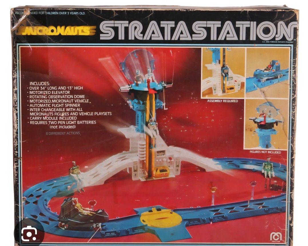Assorted Parts Track, Car, Nose Piece For 1976 Micronauts Stratastaion And 1977 Battle Cruiser**** Photos Of Boxes Are Only To Show What Sets Came