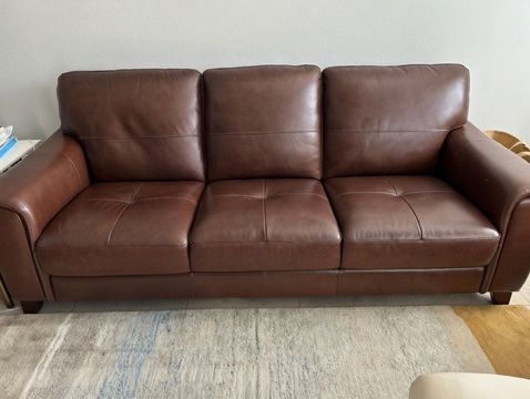 Macys home store, brown leather, two years old, no tears or scratches , in excellent condition. 86 inches.