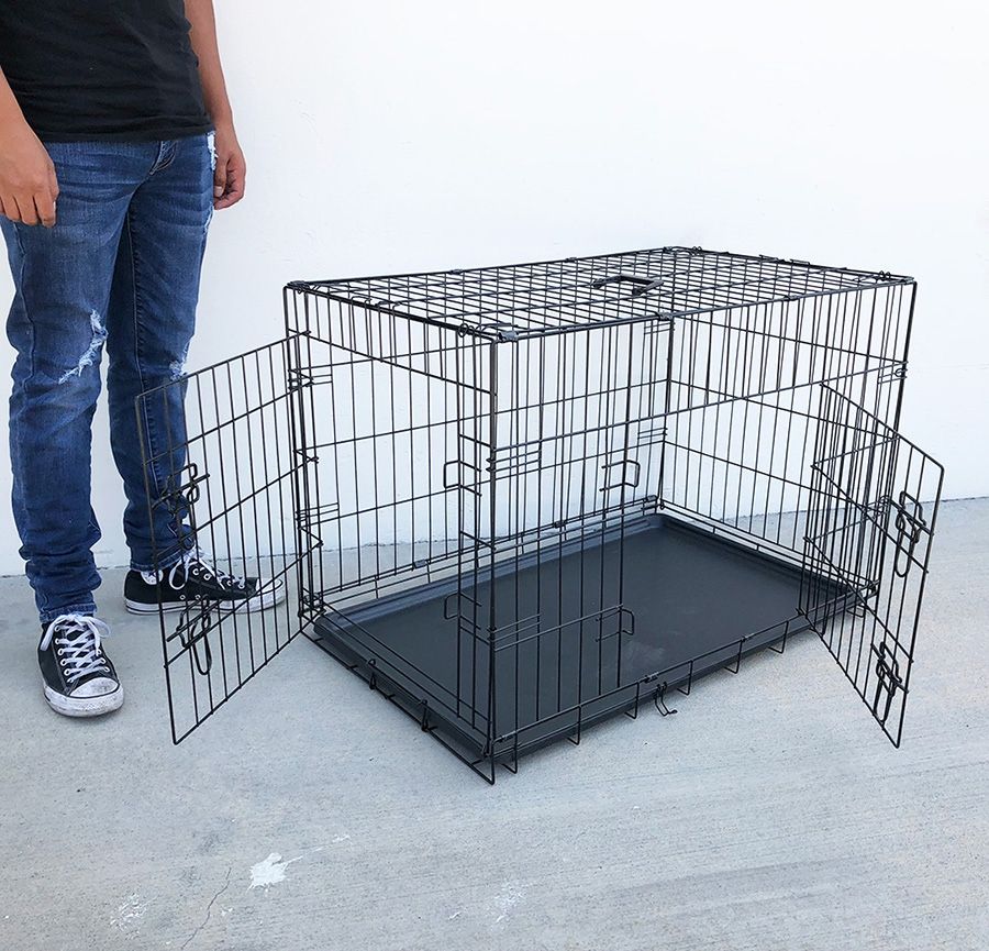 (NEW) $50 Folding 36” Dog Cage 2-Door Pet Crate Kennel w/ Tray 36”x23”x25”