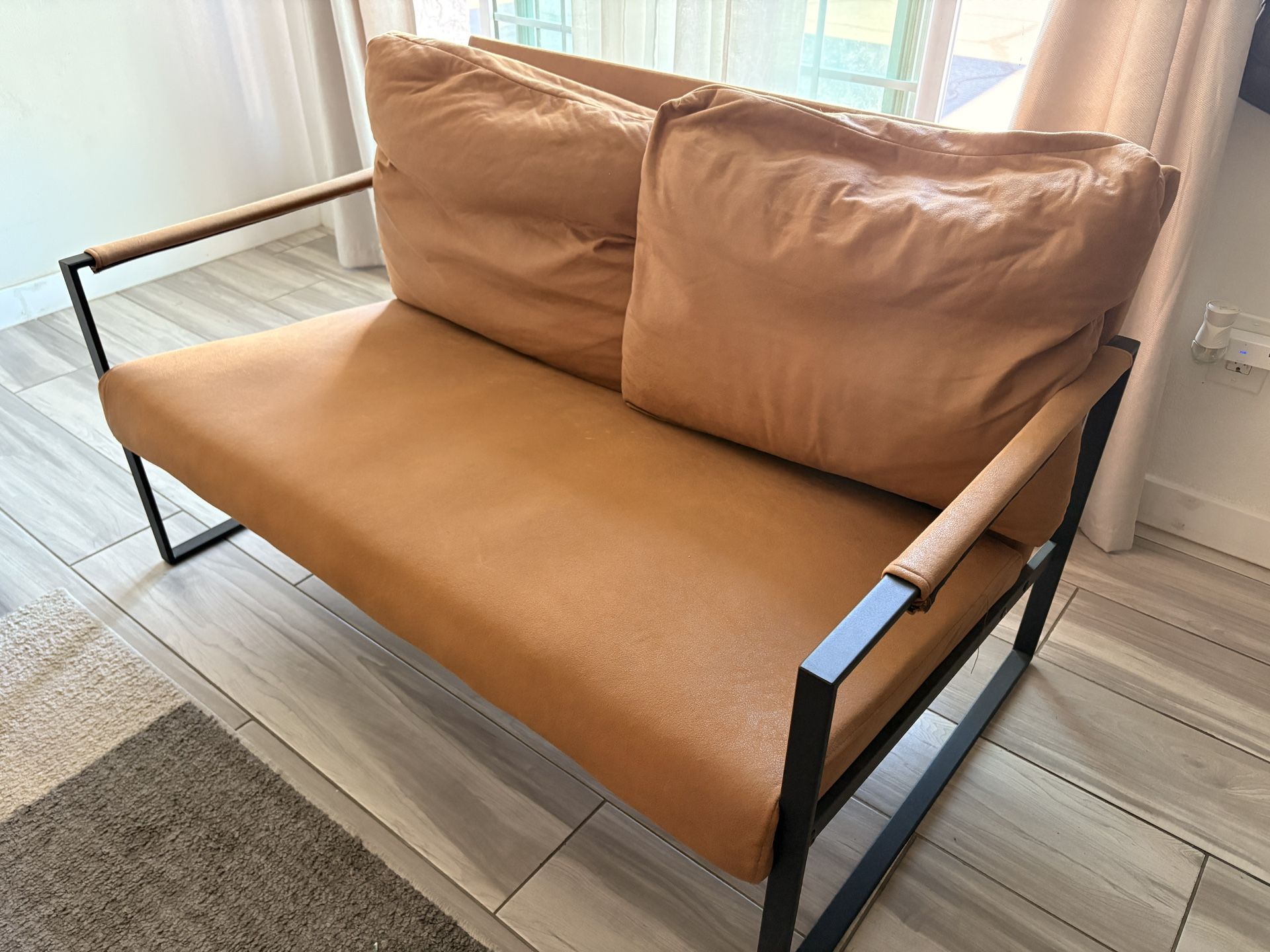 Small bench for living room, cushions are worn but no tears