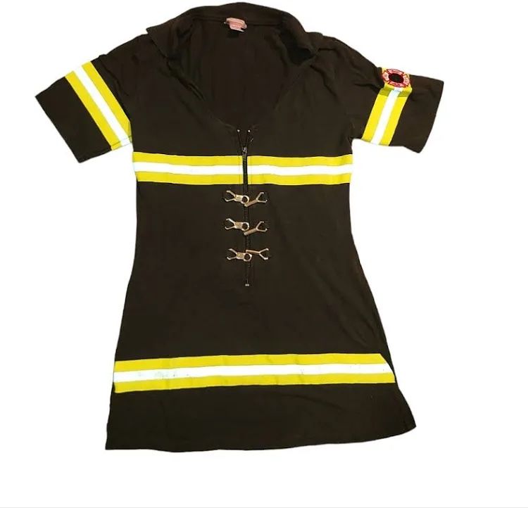Sexy Firefighter Costume – Elegant Moments Turn up the heat this Halloween with this firefighter-inspired mini dress! 🔥 • Brand: Elegant Moments • Includes: Black dress with neon green reflective stripes & zipper front • Size: Medium • Condition: Gently used, great shape • Perfect for Halloween, themed parties, or cosplay 💵 Price: $25