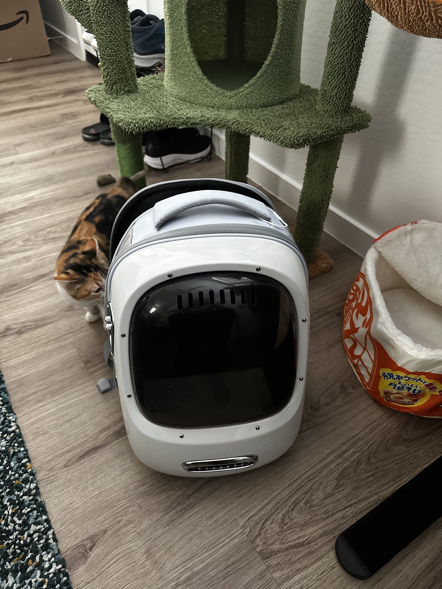 Backpack with large viewing window for pet. Also has a fan that is built in but requires a usb power bank for use. High quality.
