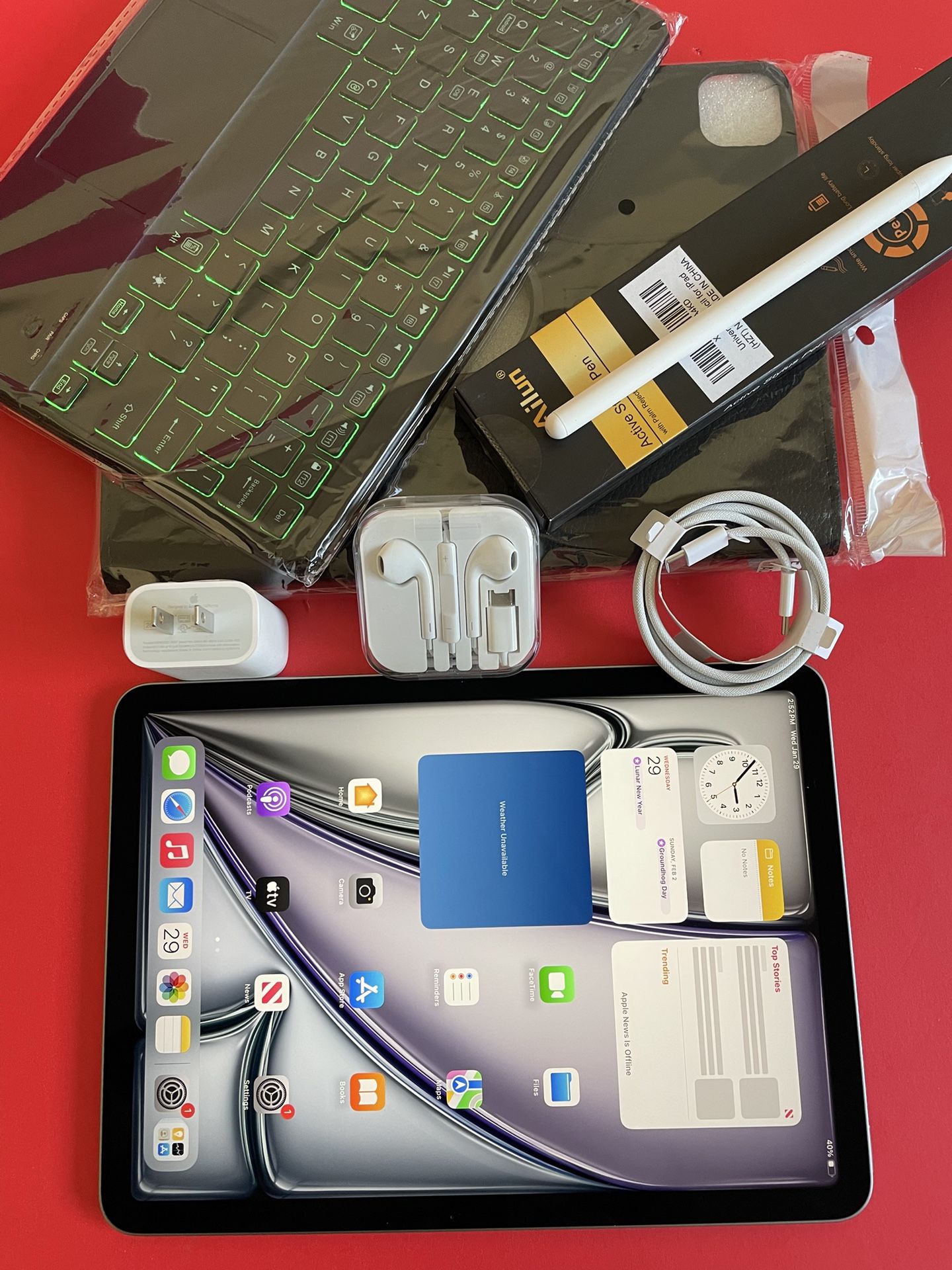 Apple IPad Air 11” ( M2 chip / 2024 Model) 128GB with pen, keyboard case & Accessories