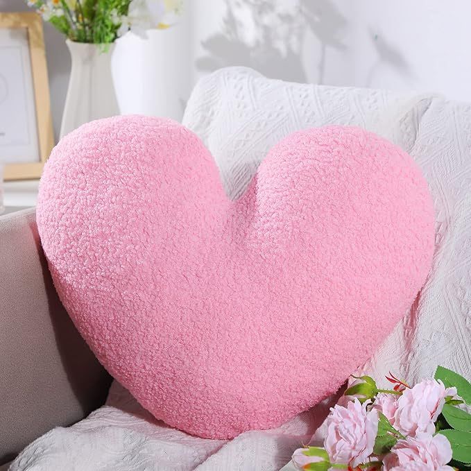 FUMETE Pink Heart Plush Pillow, Heart-Shaped Throw Pillow, Decoration, 14" x 17" (NEW)
