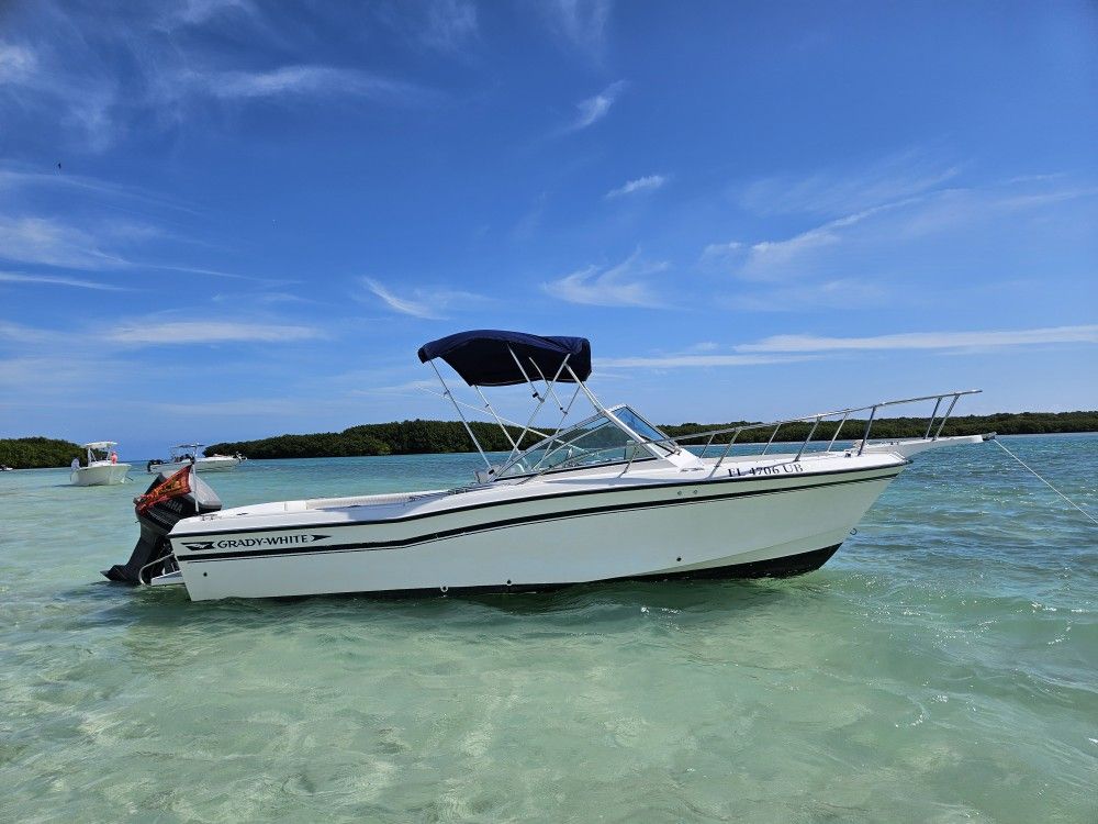Selling this wonderful GRADY WHITE 225G 1993 + ALLUMINUM MAGICTILT TRAILER. DeepV 2 Hull Design 22.5 Ft Lenght, Powered with Yamaha OX66 Saltwater I1 250 Hp, just serviced ready for water. Equipment on board: Double Aluminum Tanks (very clean) Main one 91 Gal and Aux 56 gal switchable. (Original from factory) 2 BATTERIES switchable Trim Tabs fully functioning, recently serviced (original from factory) Bracket (original from factory only in the G version) with swim platform Fresh water Shower Stainless Steal double horn 3 Bimini Top: Rear with poles, Cruise and Baw. Removable Cushions (BOW and Captain Seat) Winter cabin VHF GARMIN GPS DEEP SONAR Onboard Equipment 4 Lifevest Throwable devices 6 boat fenders 1 Anchor with chain and rope 1 Sea Anchor Signal flares Kit 2 Fire extinguisher Ready for water!!!!! Come and try it
