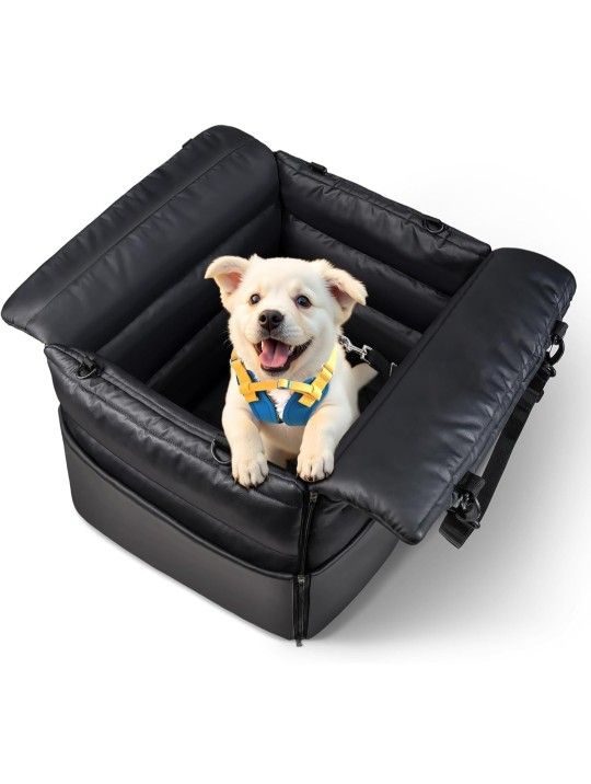 Dog Car Seats for Small Dogs: Safe & Soft Travel Booster with Safety Leash – Waterproof PU Leather Pet Car Seat for Front/Back Seat, 2-in-1 Convertible Design, Fits Dogs up to 25 lb New. Antelope