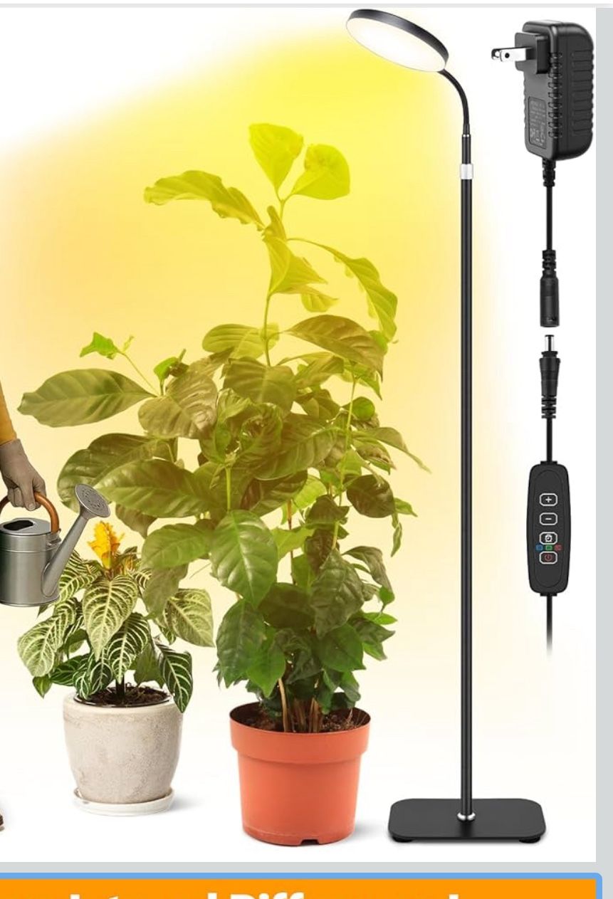 BRAND NEW IN BOX Upgraded 20W Powerful Output: We use professional adapters instead of cheap USB plugs; the upgraded plant grow light provides a stronger and wider spectrum (380nm-800nm) to accelerate photosynthesis and effectively promote indoor plant growth throughout the year. It supports the development of a wide variety of plants from small to tall Full Spectrum: Providing a universal full spectrum that can meet the light conditions your plants need in different stages. Adopting warm light instead of traditional red and blue light, the light mimics natural sunlight, which significantly improves the development of your plants Stable Base & Aluminum Material: Our upgraded base design enhances stability. A larger base with cushioning pads to ensure the stability of the entire structure and prevent scratches on the floor. The aluminum shell facilitates efficient heat dissipation 10Level Dimmable & Auto Timer: Customize your lighting with 10 brightness settings to meet the needs of your plants. Built-in timer offers 3 automatic operation modes: 3/9/12h, you can cycle on and off your plant light, whether you're traveling or working, your plants will be cared well Height Adjustable & Flexible Gooseneck: The indoor plant light's telescopic pole is easily adjustable from 31.2 inches to 63 inches, very suitable for plants ranging from small to large in size. Plant grow light features a 360° individually adjustable design that allows you to set the perfect angle