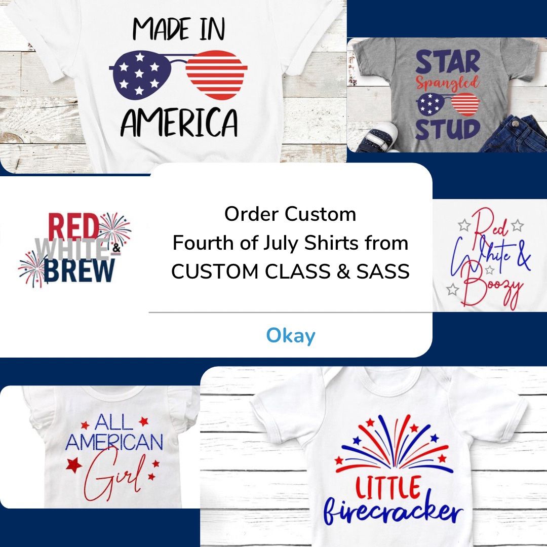 πΊπΈ 𧨠Order Your Custom Fourth of July T-Shirt From Custom Class & Sass!! π₯ Message Me With Your Design Choice To Have A Custom Listing Made For You! π₯ AVAILABLE In Uni-Sex Sizes Adult XS - XL. Plus Sizes 2XL - 3XL Are $4.00 Extra. ALSO Available In Infant & Youth Sizes! 𧨠Order MORE Than ONE & Receive A DISCOUNT! π¦ Ships In Just 2-3 Business Days! Trusted Seller On Multiple Platforms. - - - #fourthofjuly #4thofjuly #customdesigns