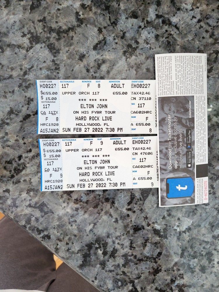 Elton John Tickets Feb 27 Hard Rock. Great Seats