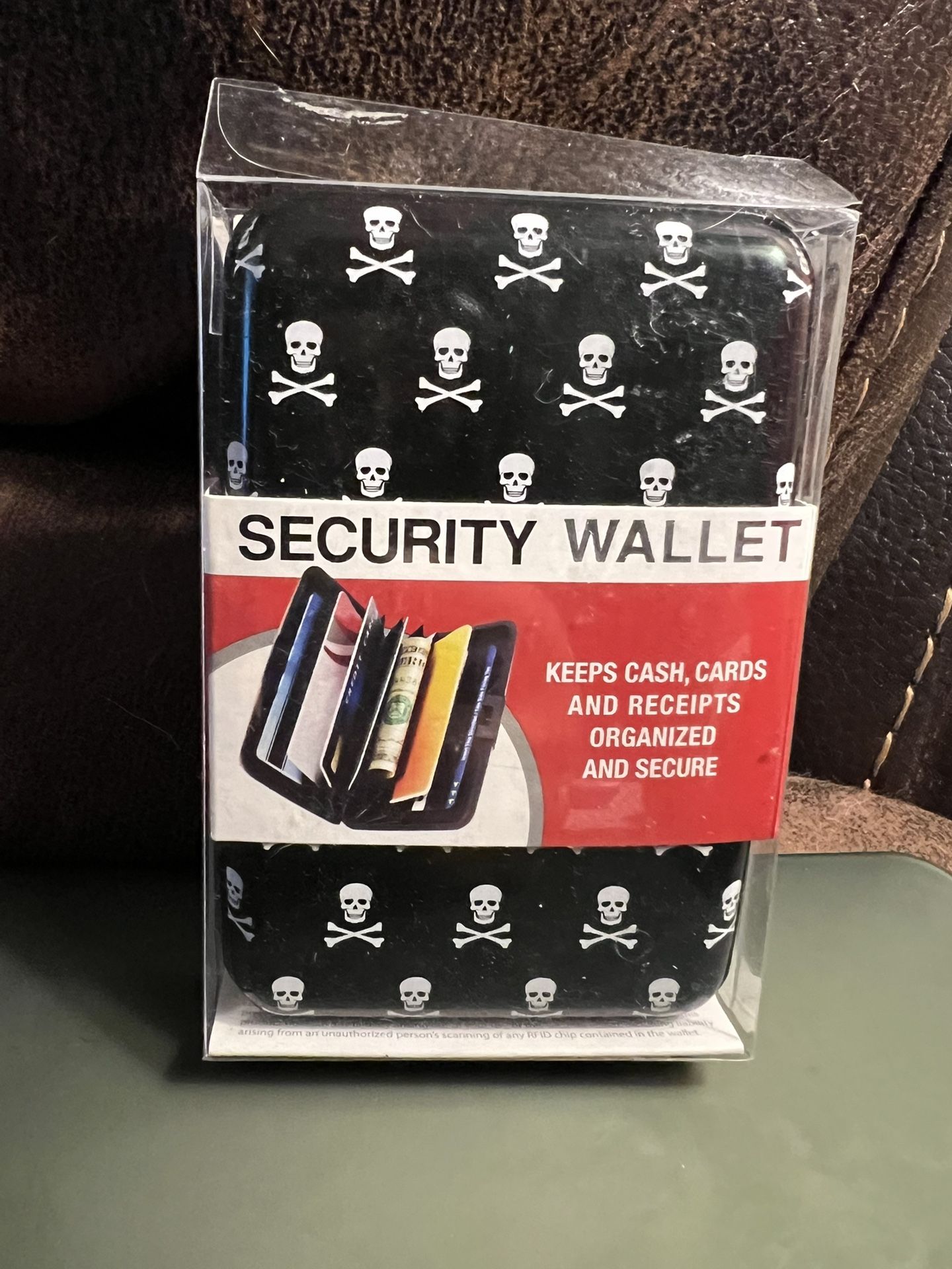 Keeps cash, cards, and receipts organized and secure. Protects your credit card data from RFID theft. Retails for $20. Porch pick up 75052. Cash only please. Firm price.