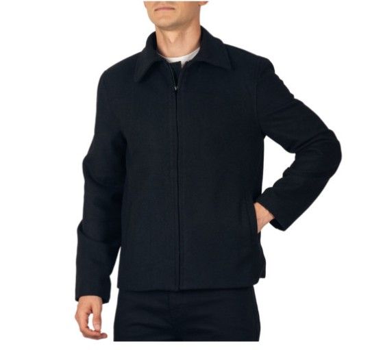 Alpine Swiss Grant men's 28" open bottom wool blend JD bomber jacket in black, size small.