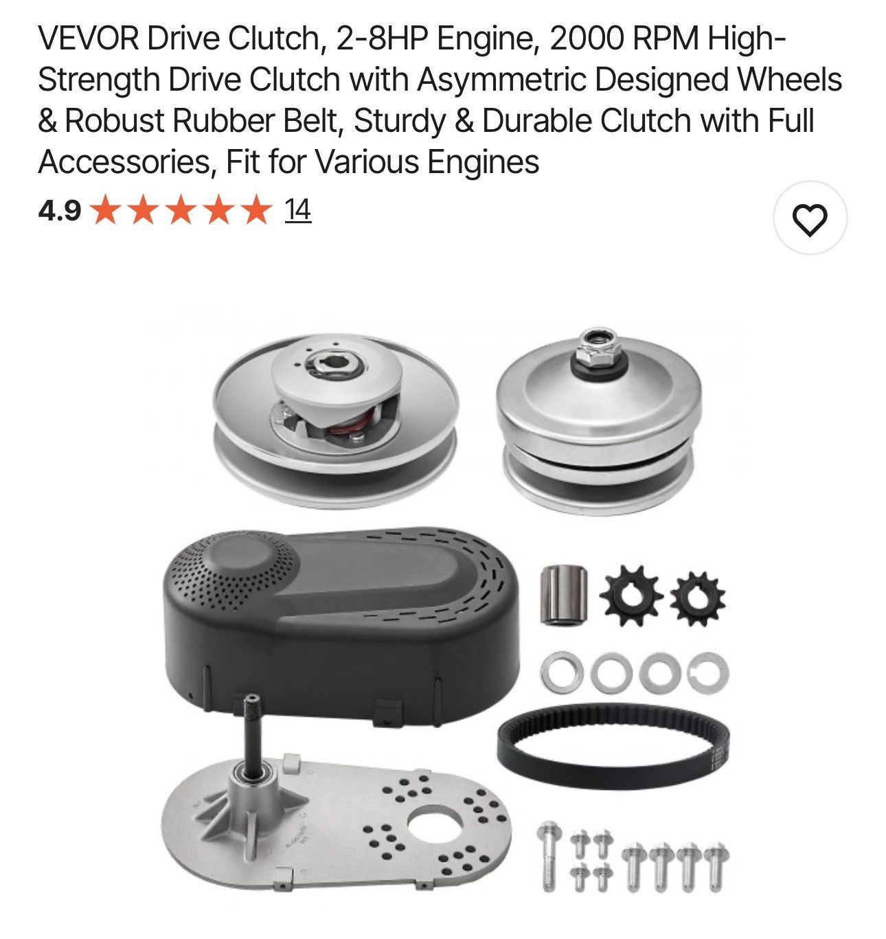 VEVOR Drive Clutch, 2-8HP Engine, 2000 RPM High-Strength Drive Clutch with Asymmetric Designed Wheels & Robust Rubber Belt, Sturdy & Durable Clutch with Full Accessories, Fit for Various Engines