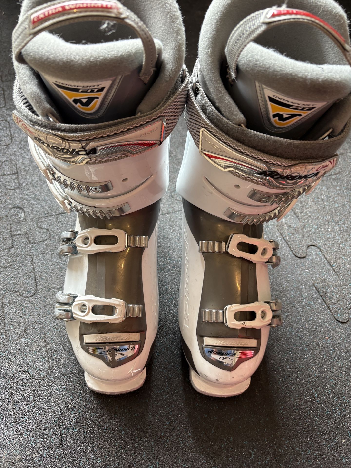 Ski boots rarely used for the 2 seasons owned. Size is about a women’s 10 In great shape, and still very soft interior