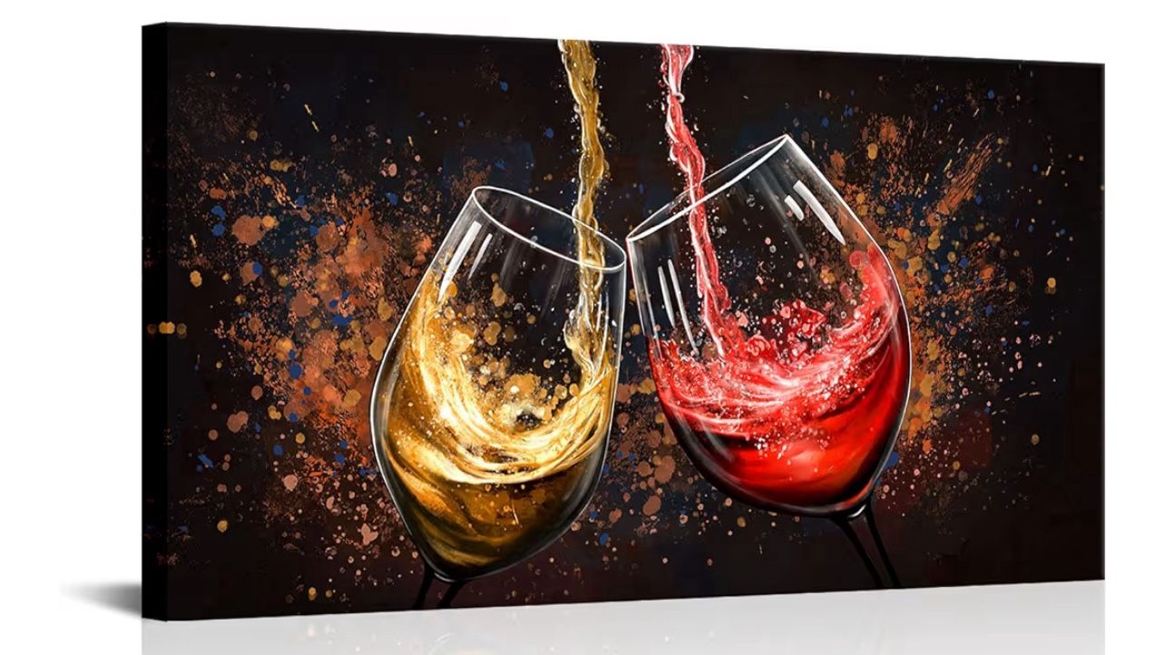 Retailer price: $59.99 New, never used OuElegent Wine Glasses Canvas Wall Art Gold Red Dining Room Painting Kitchen Artwork Prints Abstract Restaurant Wall Decor Framed 20"x40" Located near 15 fwy and Craig Rd. North Las Vegas Will deliver for $5-$10 extra charge depending on location. Please be sure to check out other/relatable items in my inventory. Many Items NEW