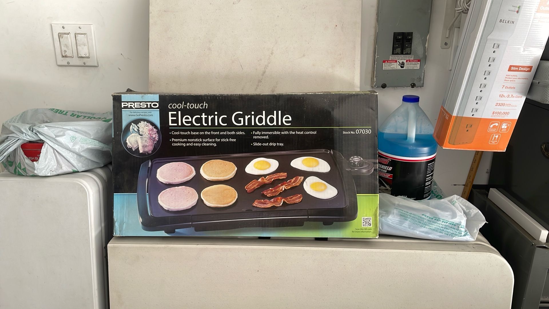 Electric Griddle Cool -Touch base in the front and both sides. Premium nonstick surface for stick free cooking and easy cleaning. Fully immersible with the heat control removed. Side out drip tray.