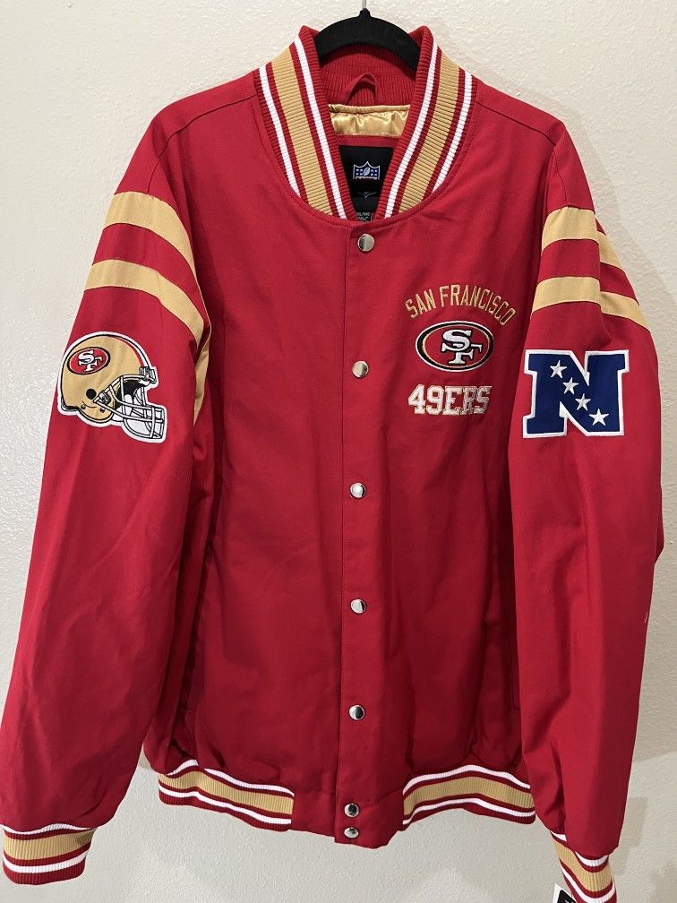 Show your 49ers Pride in style! This brand new San Francisco 49ers Jacket is perfect for game days, tailgating, or everyday wear. Features include: Size: Men's XL Condition: Brand New with Tags Design: Classic 49ers colors and logo Material: Durable, Warm, and Comfortable Perfect For: NFL fans, collectors, or as a gift. Don't miss out on this opportunity to snag new 49ers gear. Price :150