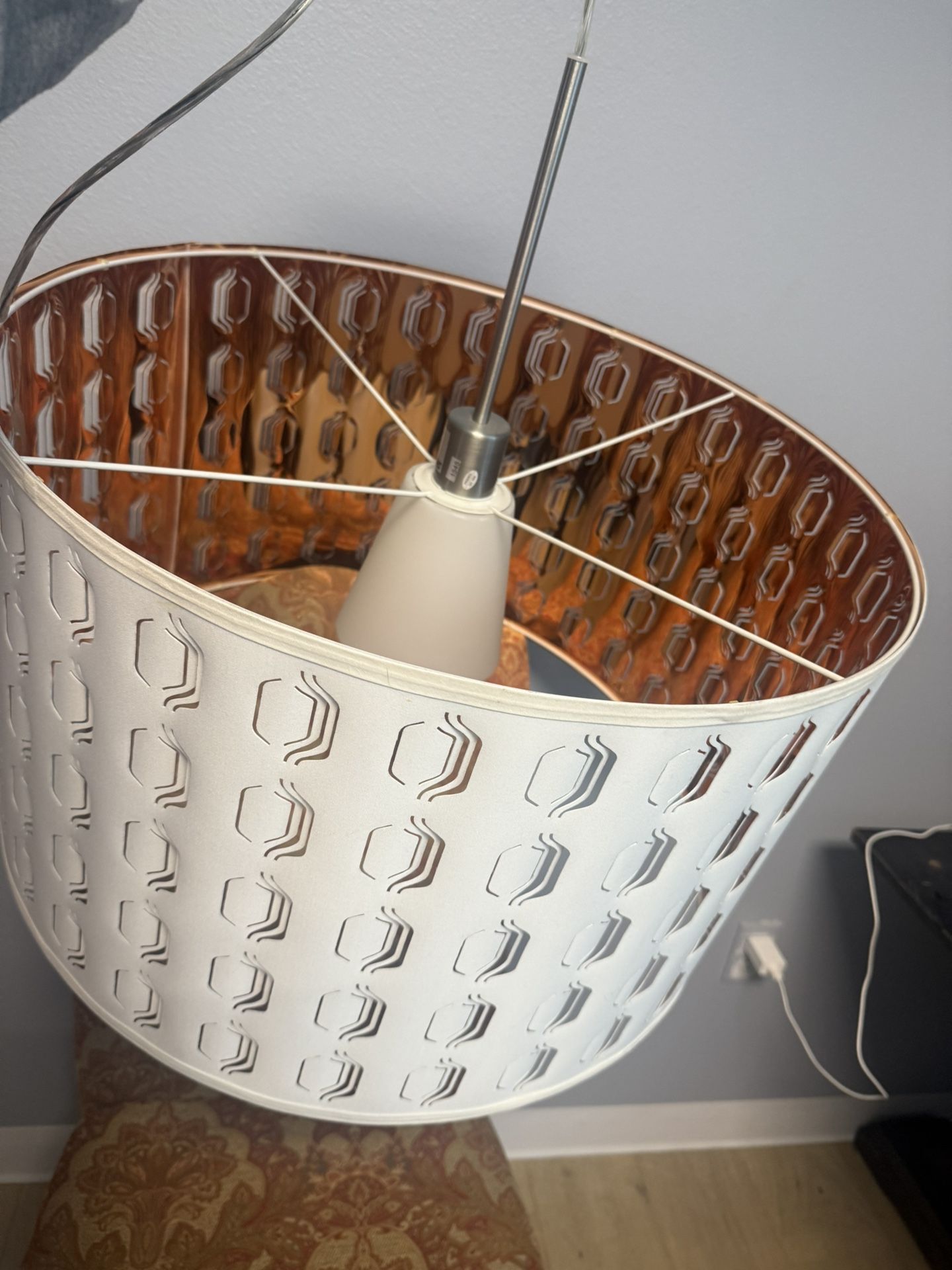 White drum pendant copper interior hardwired long cord