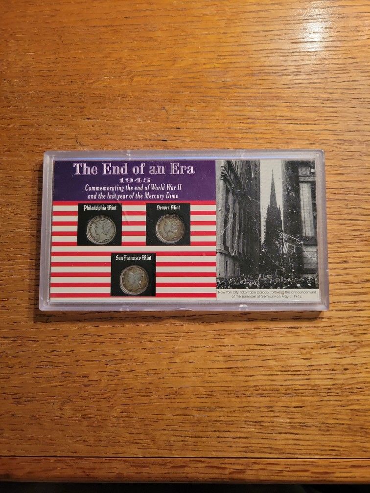 1945, 1945D and 1943S. End of the ware and lwft year of the Mercury dime. Nicely presented.
