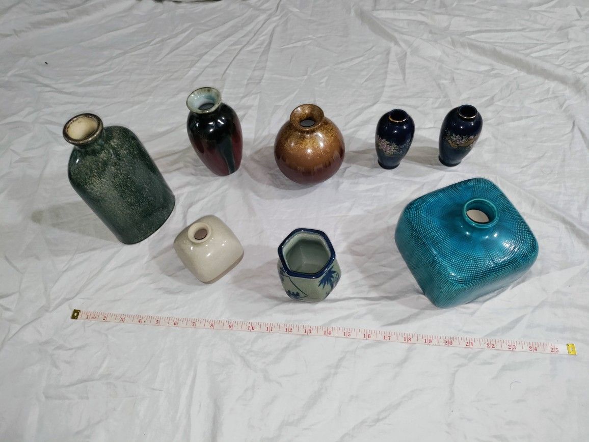 8 SMALL Ceramic Table VASES Various sizes, Colors (Tallest 8" Smallest 4")