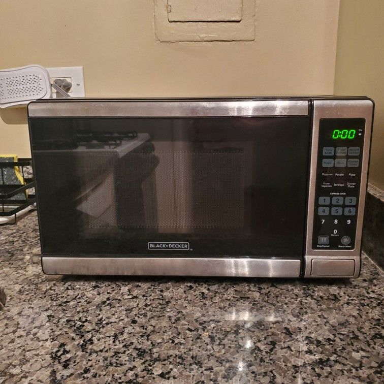 Small Black + Decker rotating plate microwave. Used but excellent condition.