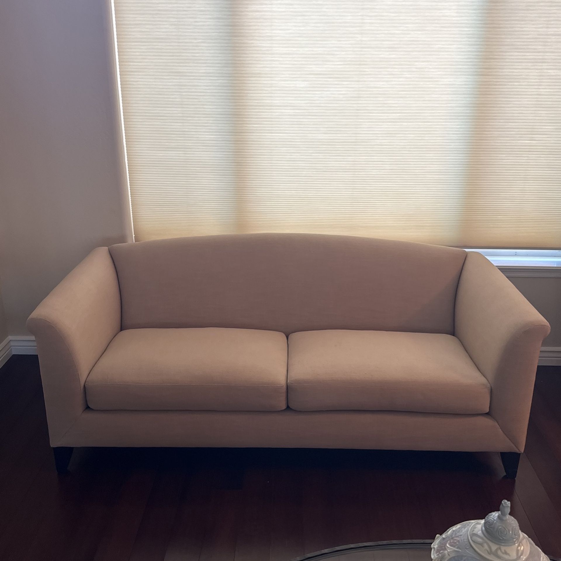 Gorgeous cream colored sofa/love seat Width 80 inches Depth 35 inches Back height 31 inches Seat height 18 inches Seat depth 22 inches