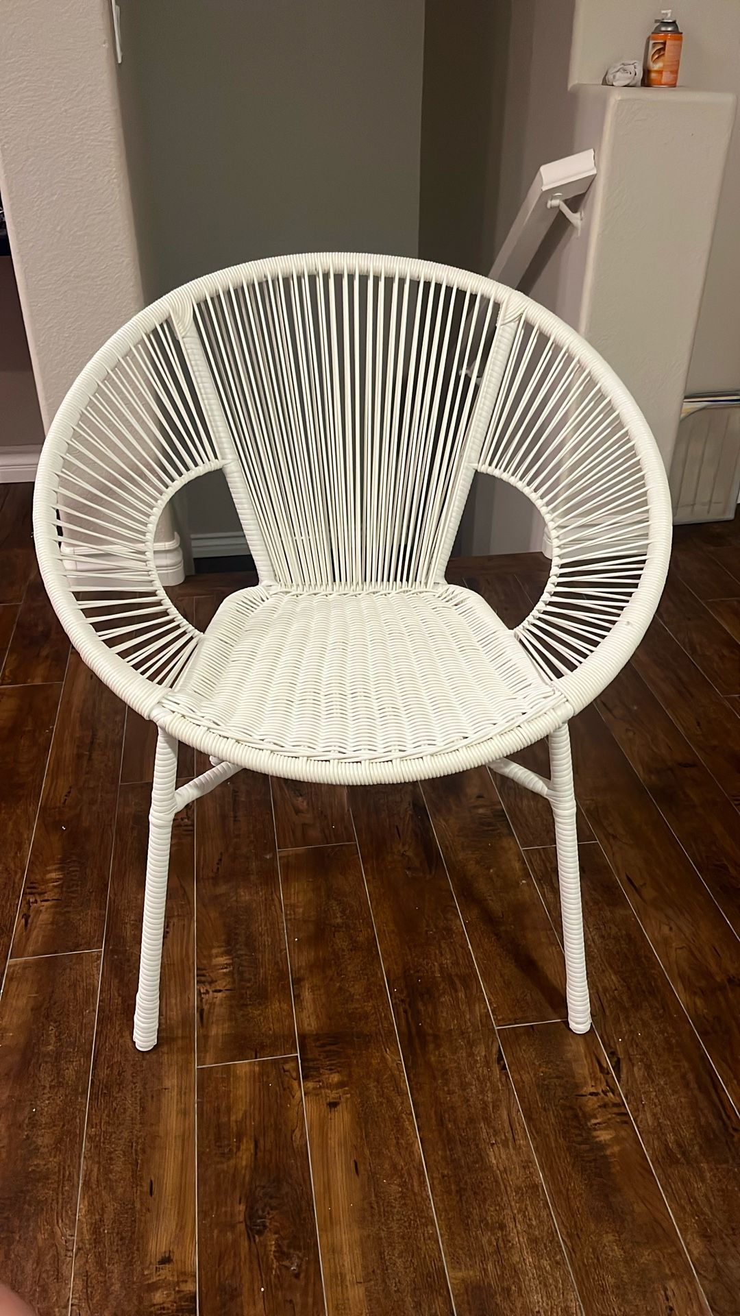 Here is a White in Color MidCentury Hammock weave Chair in White. Used 2 times Great Stule Style