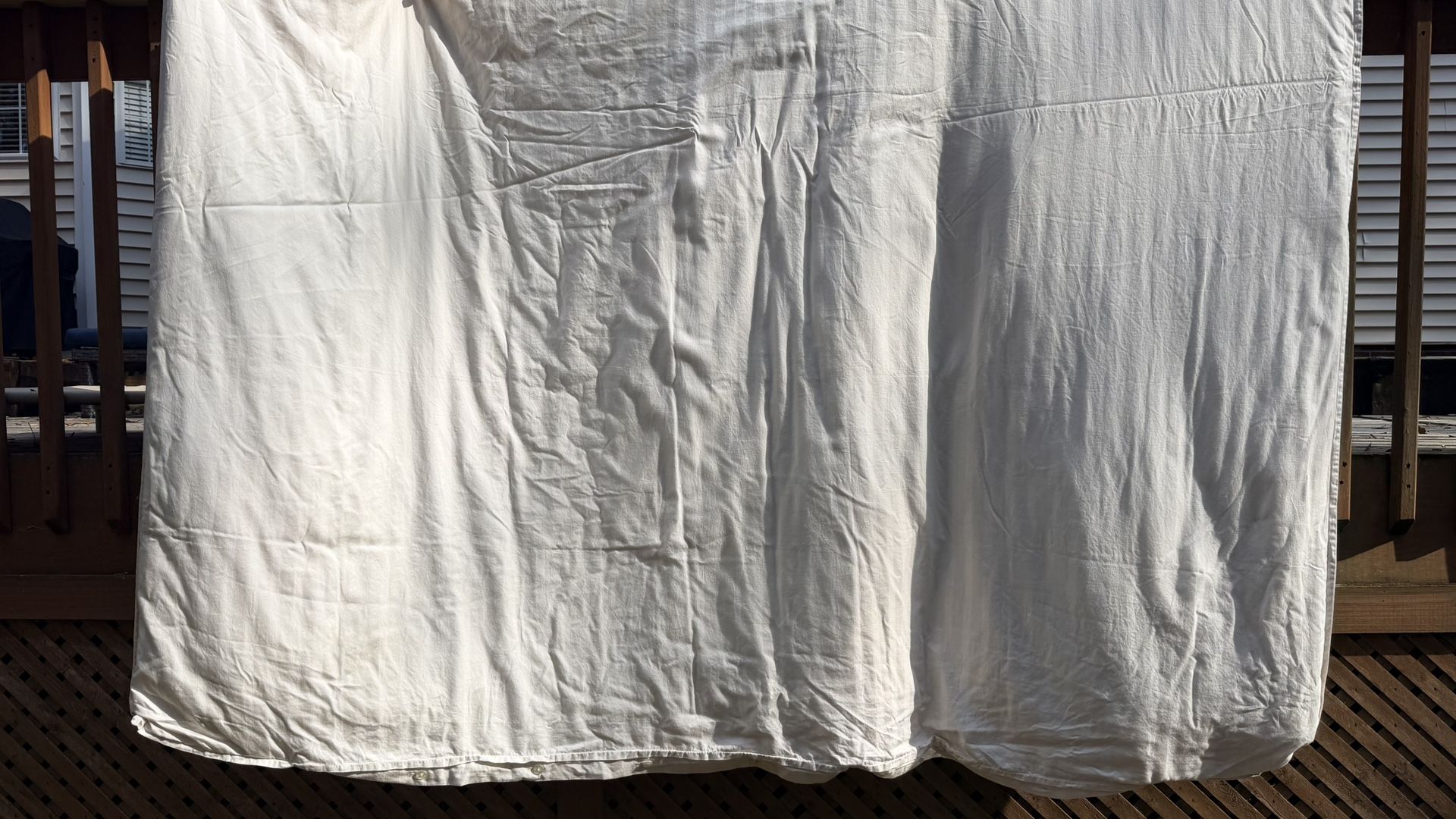King duvet. White cream. From macys. Has button closure. Duvet cover and insert included. No stains clean!