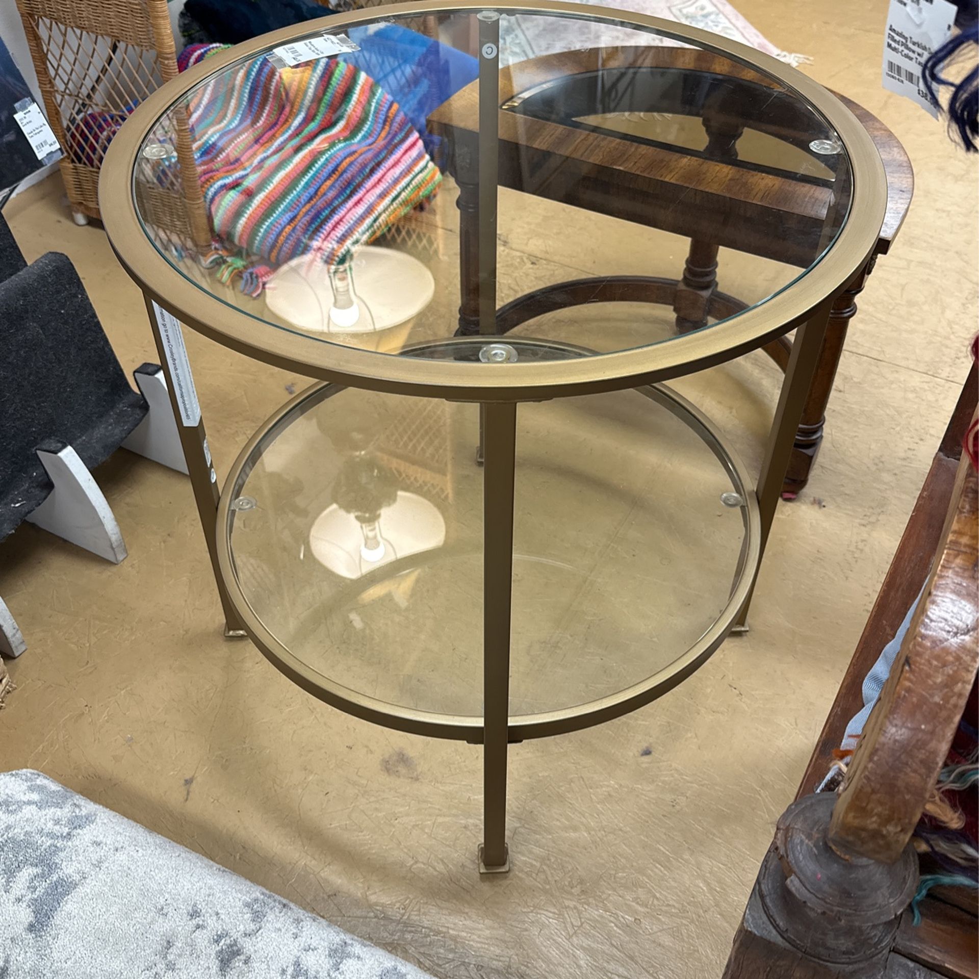 Modern Gold 2-Tier Glass Top Side Table